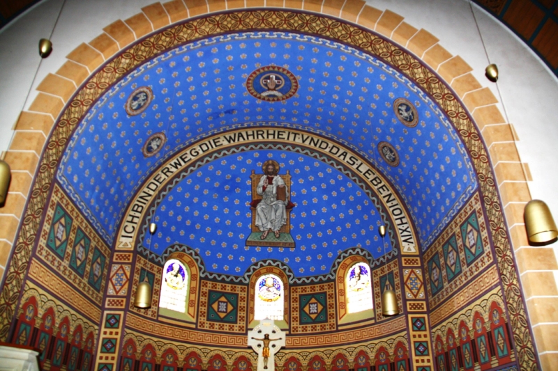 In der Christuskirche findet sich eine Ausmalung, wie man sie in einer vergleichsweise jungen protestantischen Kirche nicht unbedingt erwartet.